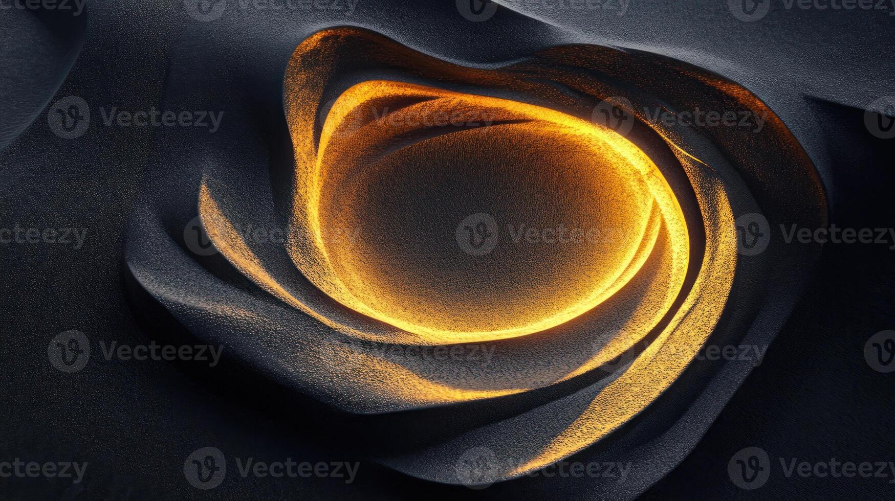 Glowing amber ring encircled by dark, swirling, textured folds, creating a vortex-like effect against a deep charcoal backdrop. The texture appears granular, almost sandy Pro Photo