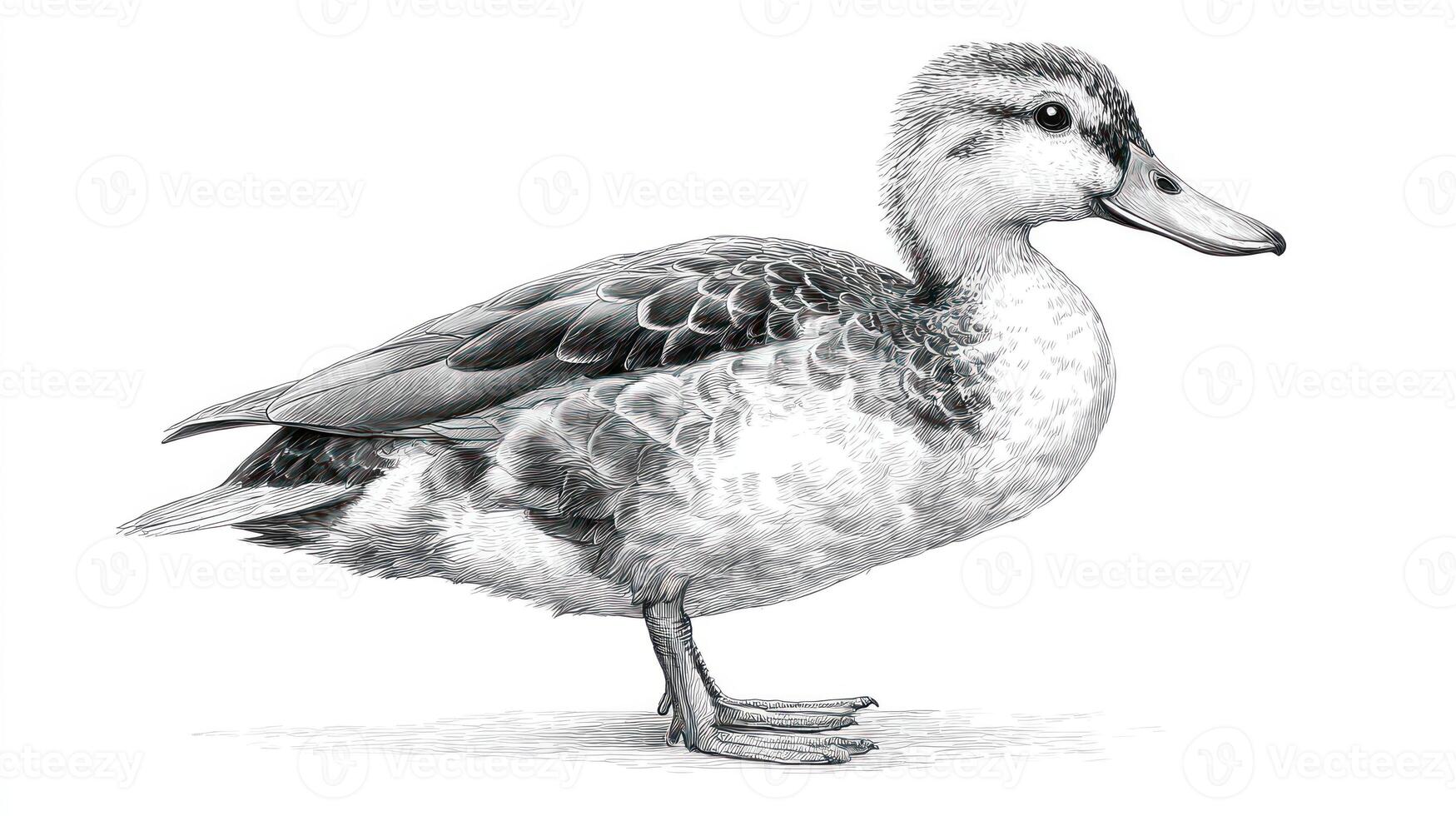 Duck illustration, detailed grayscale rendering with intricate feather texture Pro Photo