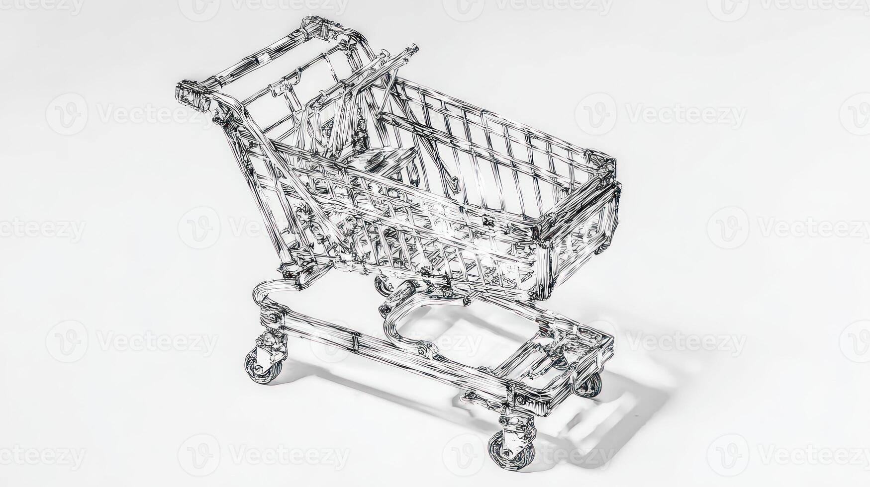 Wireframe rendering of a small shopping cart on a white surface with shadow Pro Photo