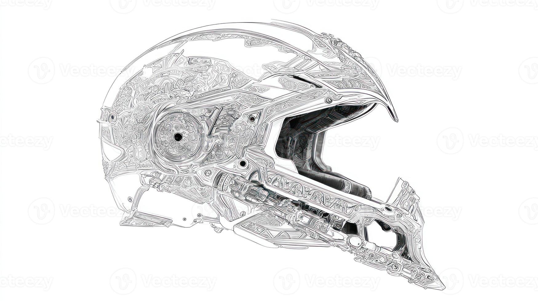 Intricate sketch of helmet. Fine lines and textures create a metallic feel Pro Photo