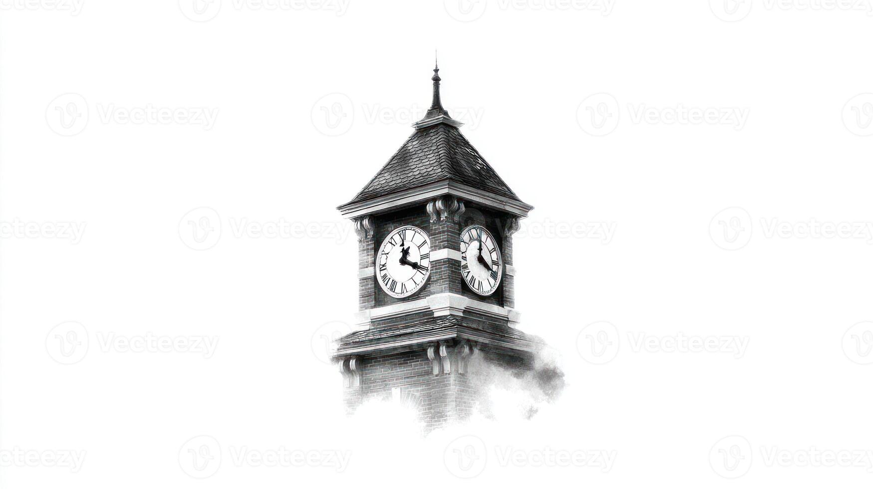 Sketch of a clock tower top with two clock faces under a pyramidal roof Pro Photo