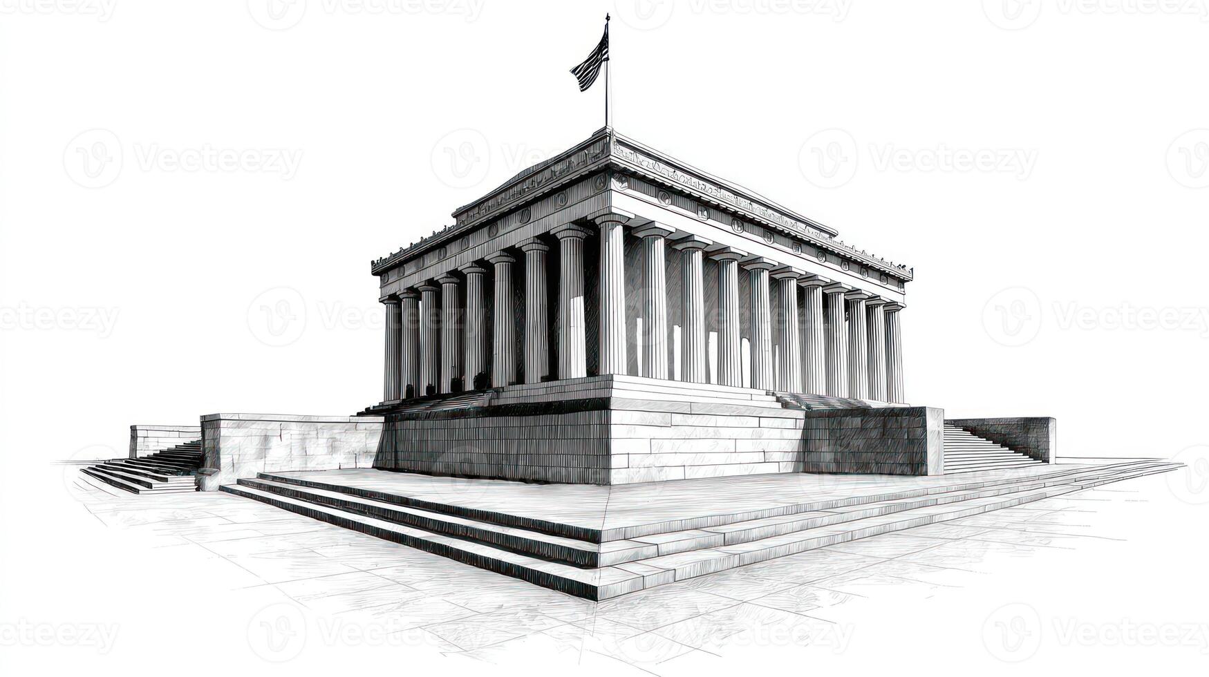 Monumental building with columns, flag, steps, and stark grayscale perspective Pro Photo