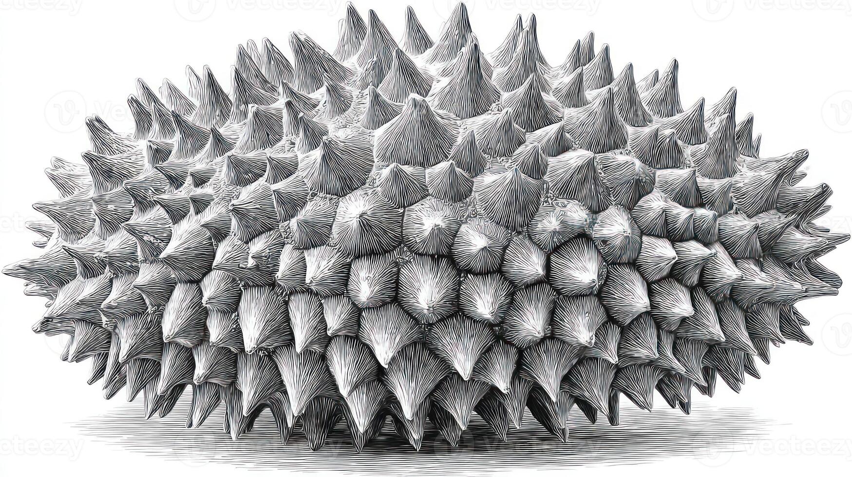 Ovoid form covered in sharp, triangular points with shadow, shaded monochrome Pro Photo