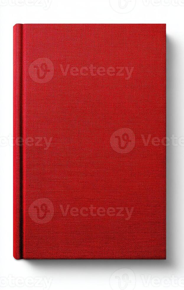 A solid red book with a fabric-like texture, casting a shadow on a white background Pro Photo