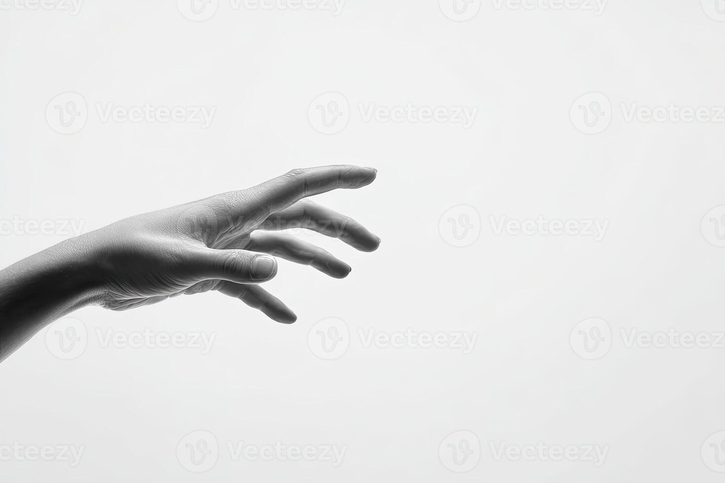 A grayscale image of a hand extending towards the upper right, against a white background Pro Photo