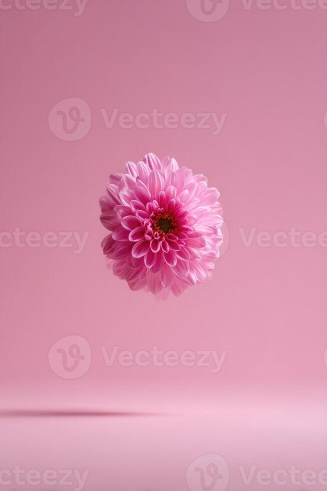 A pink, spherical flower floats against a matching background, casting a soft shadow Pro Photo