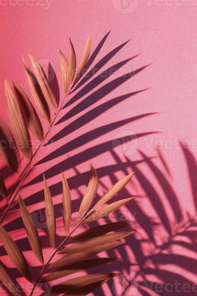 Pink backdrop with palm leaves creating shadow art, simple and elegant composition Pro Photo