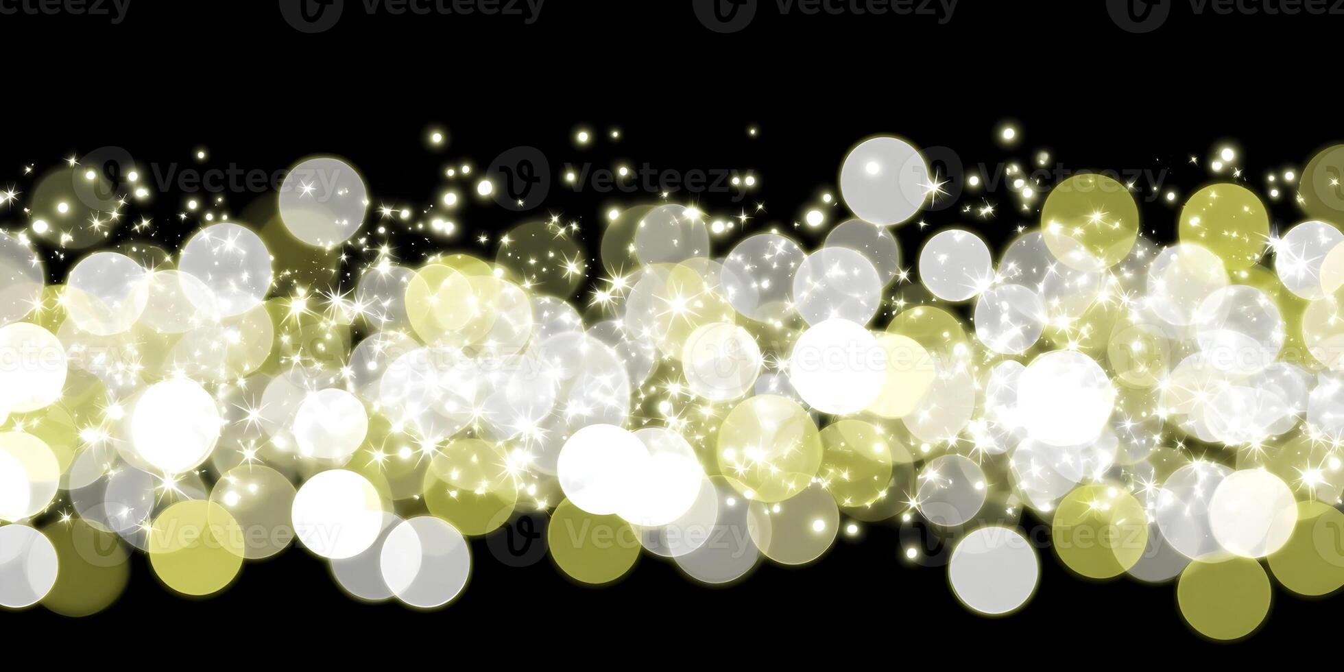 A vibrant horizontal bokeh border with golden and white sparkling lights on a dark background creating a festive and elegant illumination Pro Photo