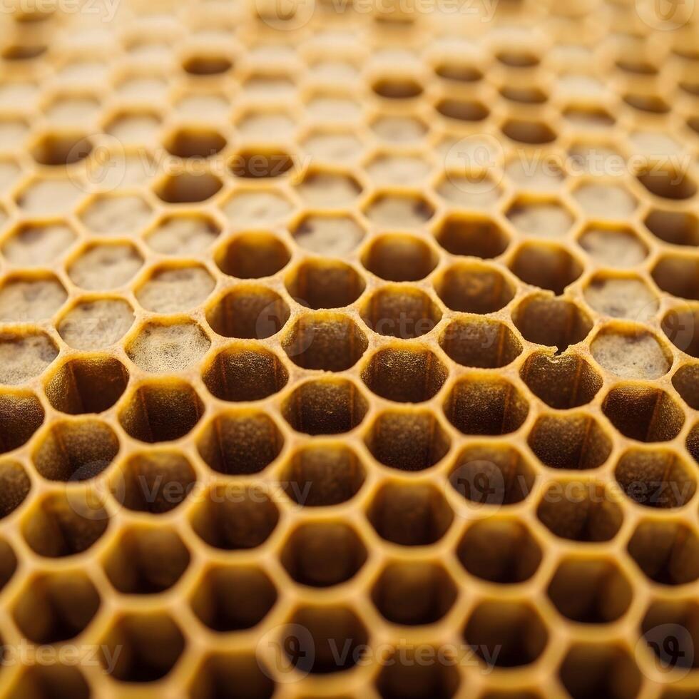 Macro Exploration of Beehive Wax Revealing Intricate Honeycomb Textures and Patterned Structures Bathed in Warm, Golden, Timeless Light Artfully Crafted. Pro Photo