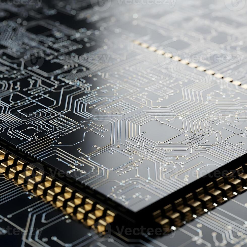 Macro Vision of Reflective Quantum Microchip A Journey into Sleek, Futuristic Metallic Surfaces and Shimmering Circuit Textures of Technological Elegance Pro Photo
