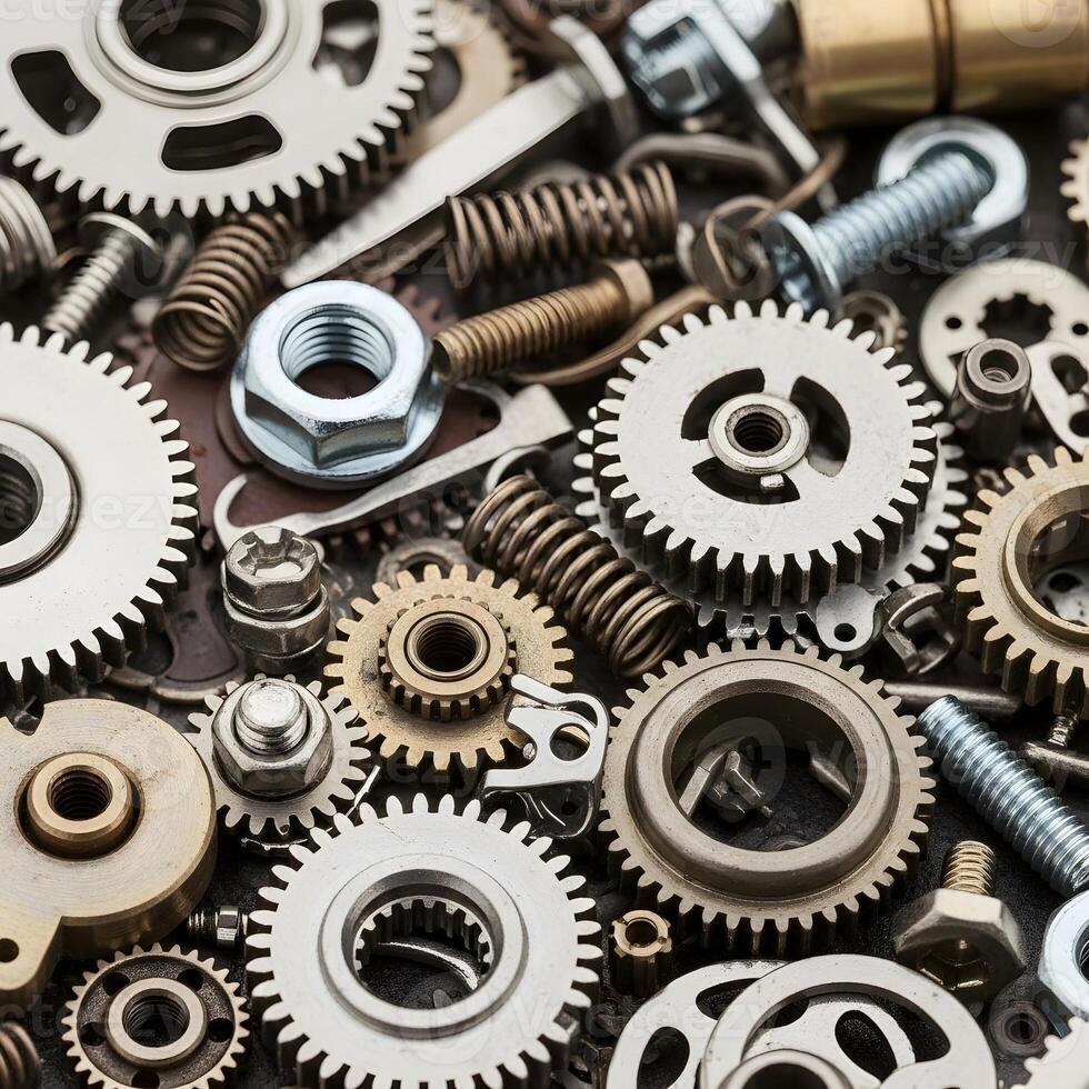Macro Mastery A Chaotic Tapestry of Intricate Mechanical Components, Each Perfectly Textured and Detailed, Set Against a Soft Blurred Background Pro Photo