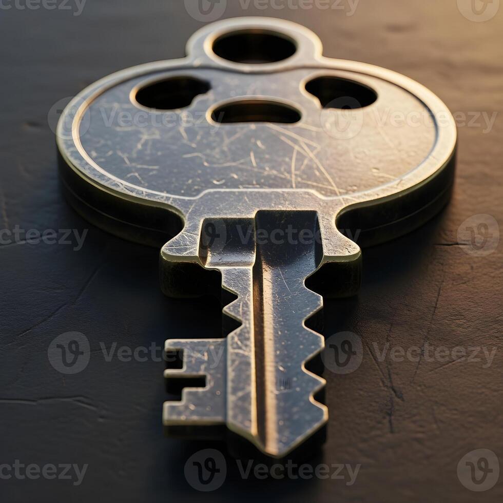 Intricate Antique Key Macro Photograph A Exploration of Elegant Reflections, Timeless Craftsmanship, and Artistic Texture on a Minimal Dark Canvas. Pro Photo