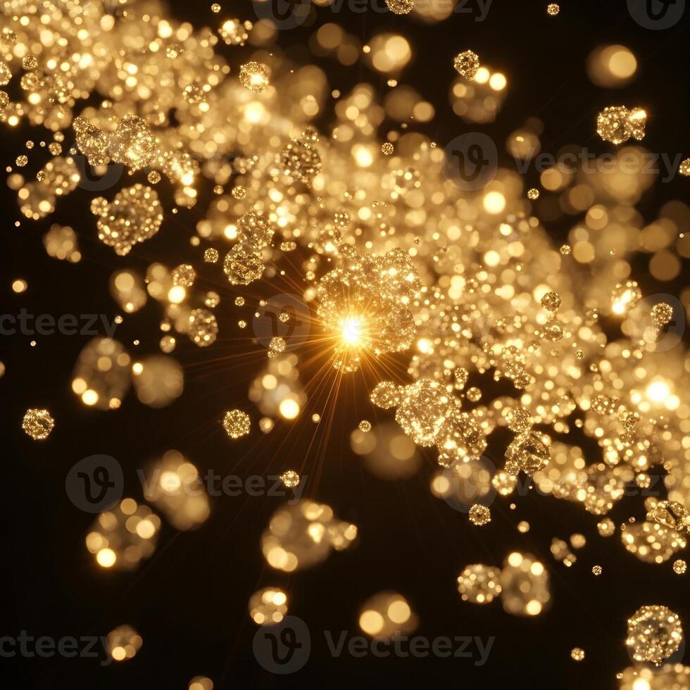 Macro shot capturing radiant, shimmering golden particles that blend light, intricate textures, and glowing patterns on a mysterious dark background Pro Photo
