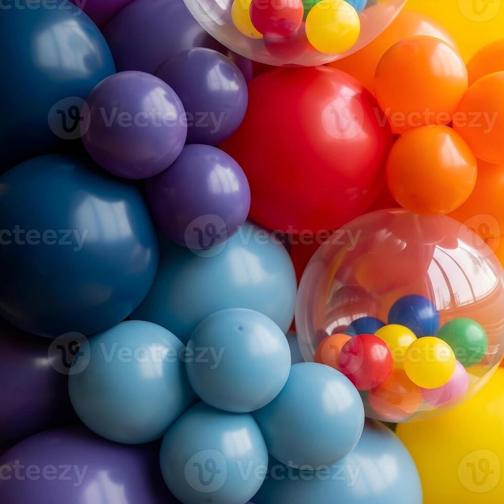 Macro Enchantment A Vibrant Celestial Arrangement of Balloons Showcasing Delicate Textures and Reflective Surfaces under Subtle Ambient Natural Illumination Pro Photo