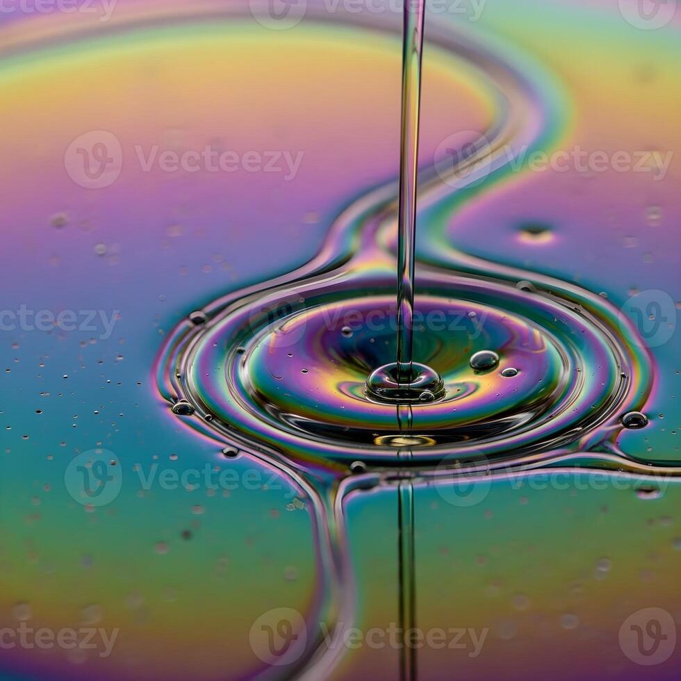 Dynamic Fluid Art Swirling Oil Droplets Merging with Clear Water Unveil A Mesmerizing Display Of Vibrant Textures And Color Transitions. Pro Photo