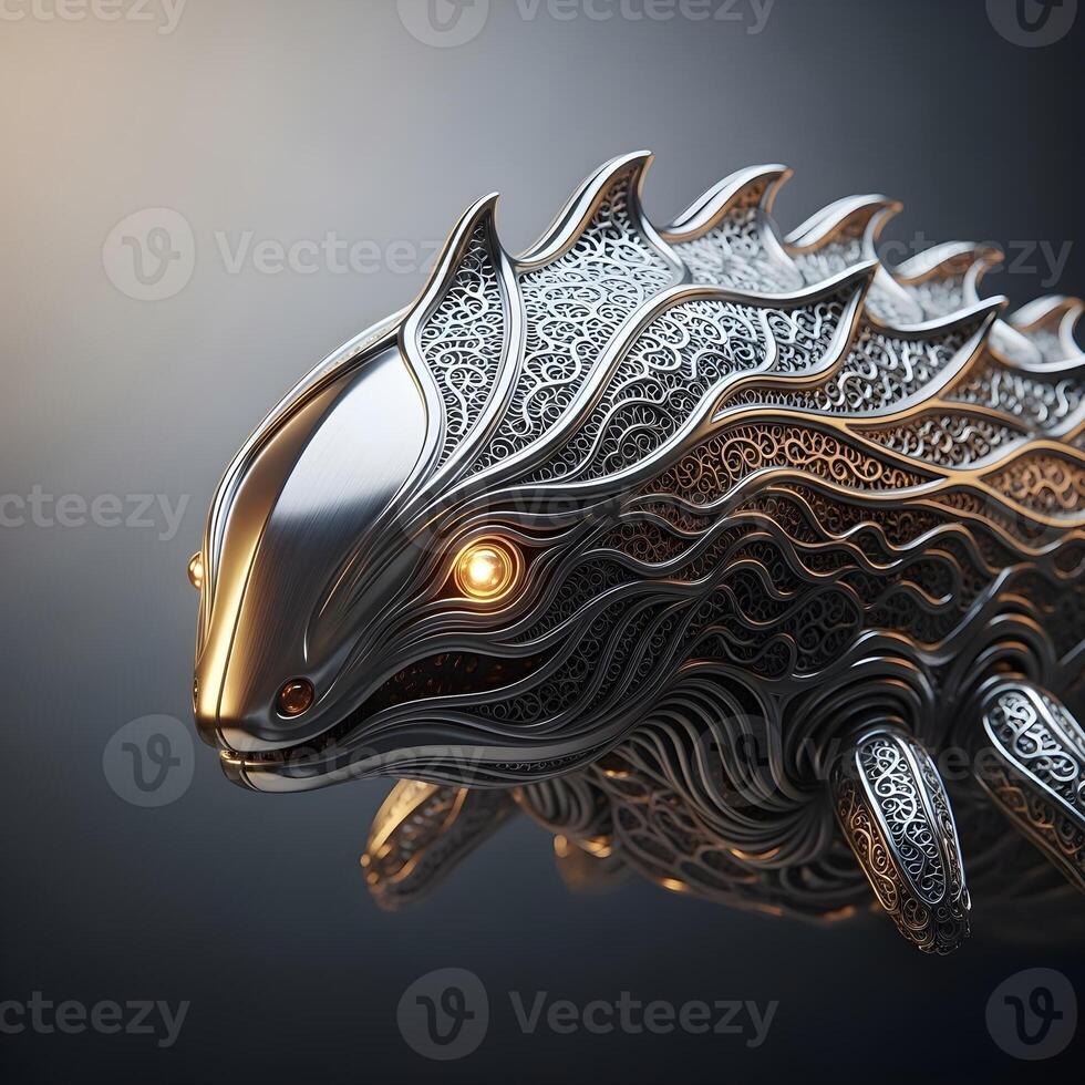 Macro Marvel Ultrafarox's Dynamic Fusion of Luminous Metallic Surfaces, Intricate Organic Patterns, and Atmospheric Soft Lighting in a Minimalist, Upscale Gradient Setting Pro Photo