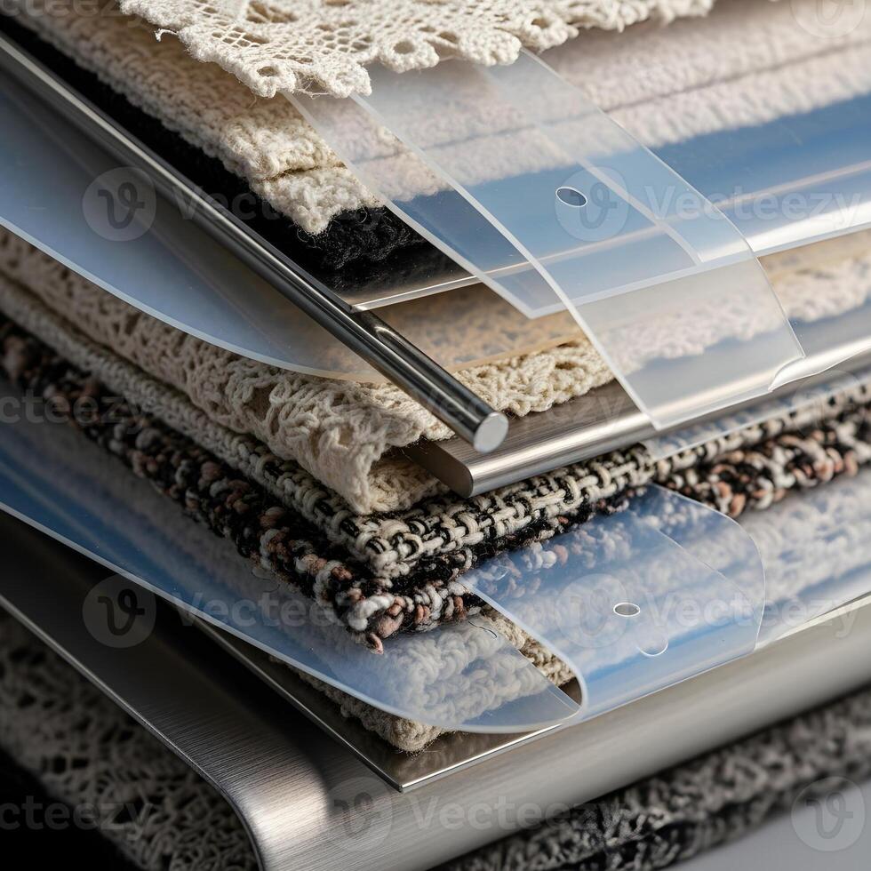 Macro Convergence Layered Textiles, Reflective Metal, and Translucent Polymer in Soft Ambient Light, Capturing a Quickening Moment of Intricate Dynamism Pro Photo