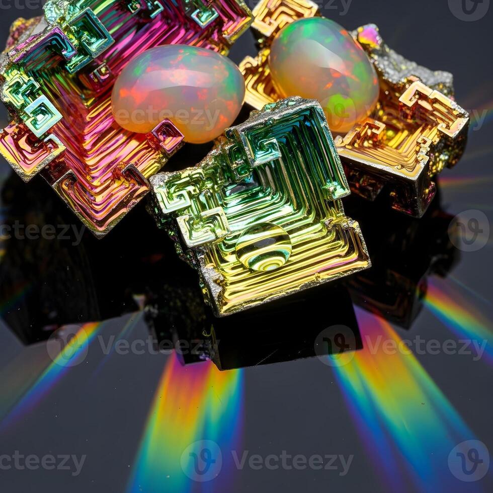 Vibrant Iridescent Minerals Merge with Rainbow Reflections on a Sleek Surface, Creating a Glow of Modern Luxury and Captivating Curiosity Pro Photo