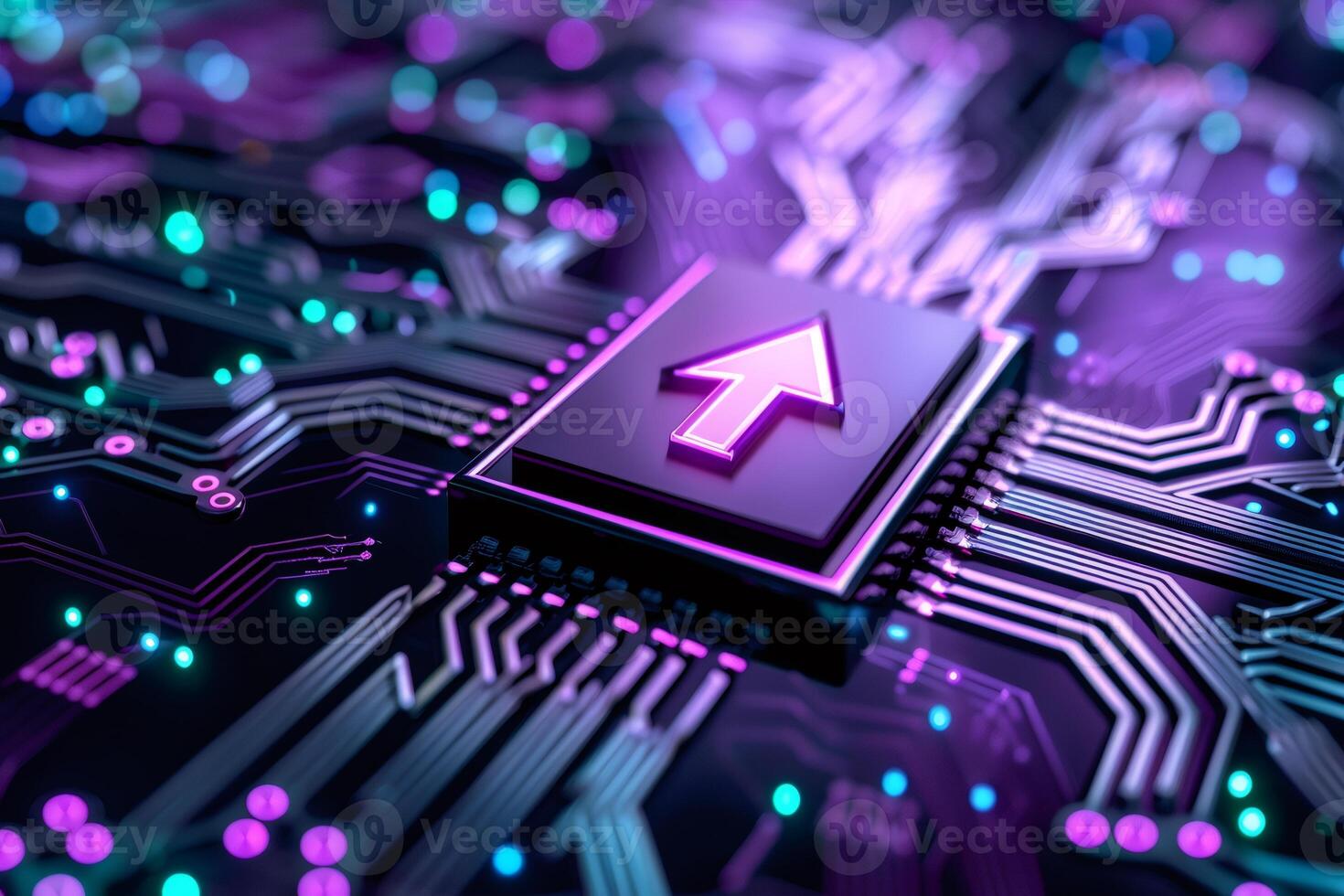 Processor chip with arrow symbolizing digital upgrade and progress Pro Photo
