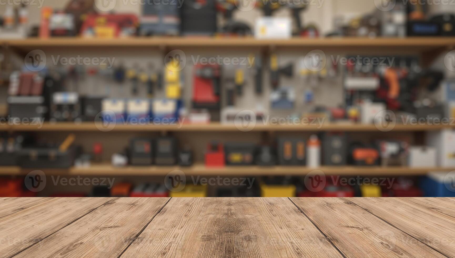 Wooden Surface in Front of a Blurred Array of Objects on Shelves, A Still Life. Pro Photo