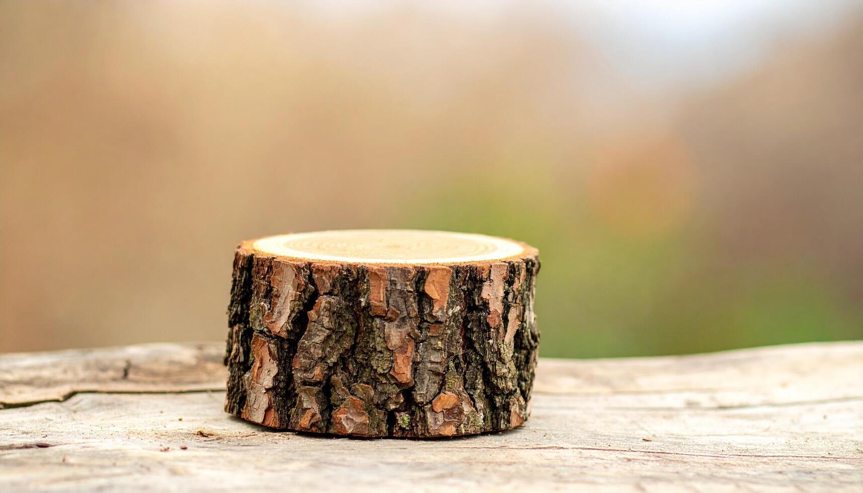 Rustic Wooden Slice Prop on a Distressed Surface with Soft Bokeh Background Free Photo