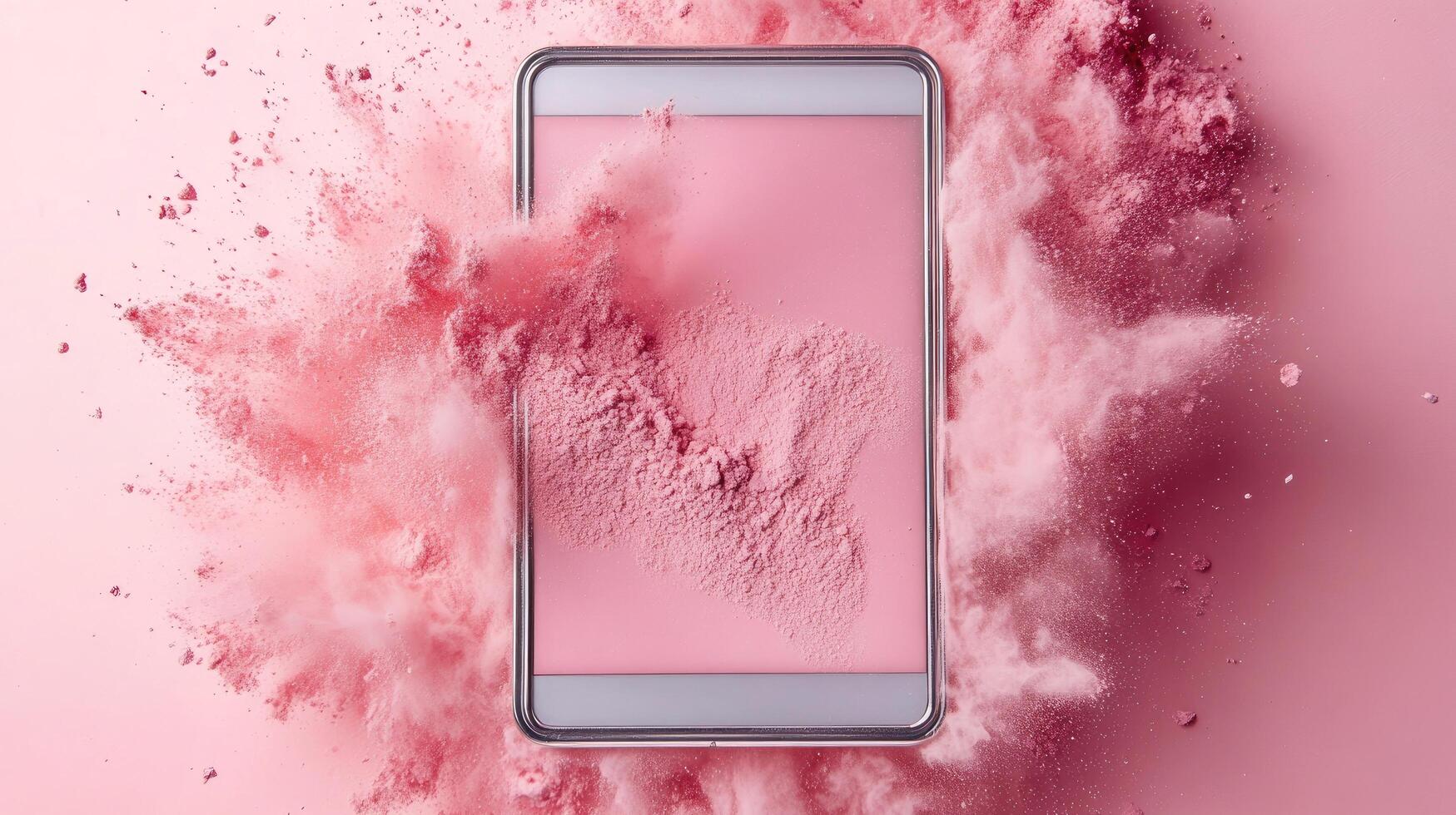 Pink powder explodes around a phone creating a dynamic and abstract burst of color photo