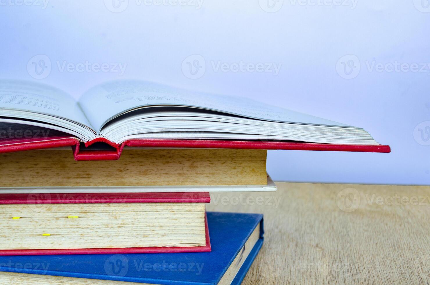 A dynamic arrangement of books stacked and one half open with pages mid turn creating a motion effect. Pro Photo