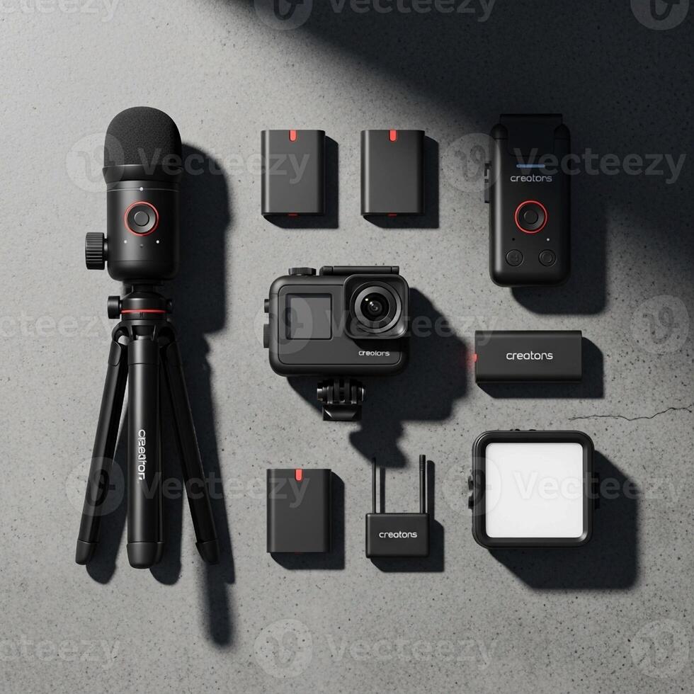 Compact digital camera and microphone setup with accessories for vlogging and content creation Pro Photo