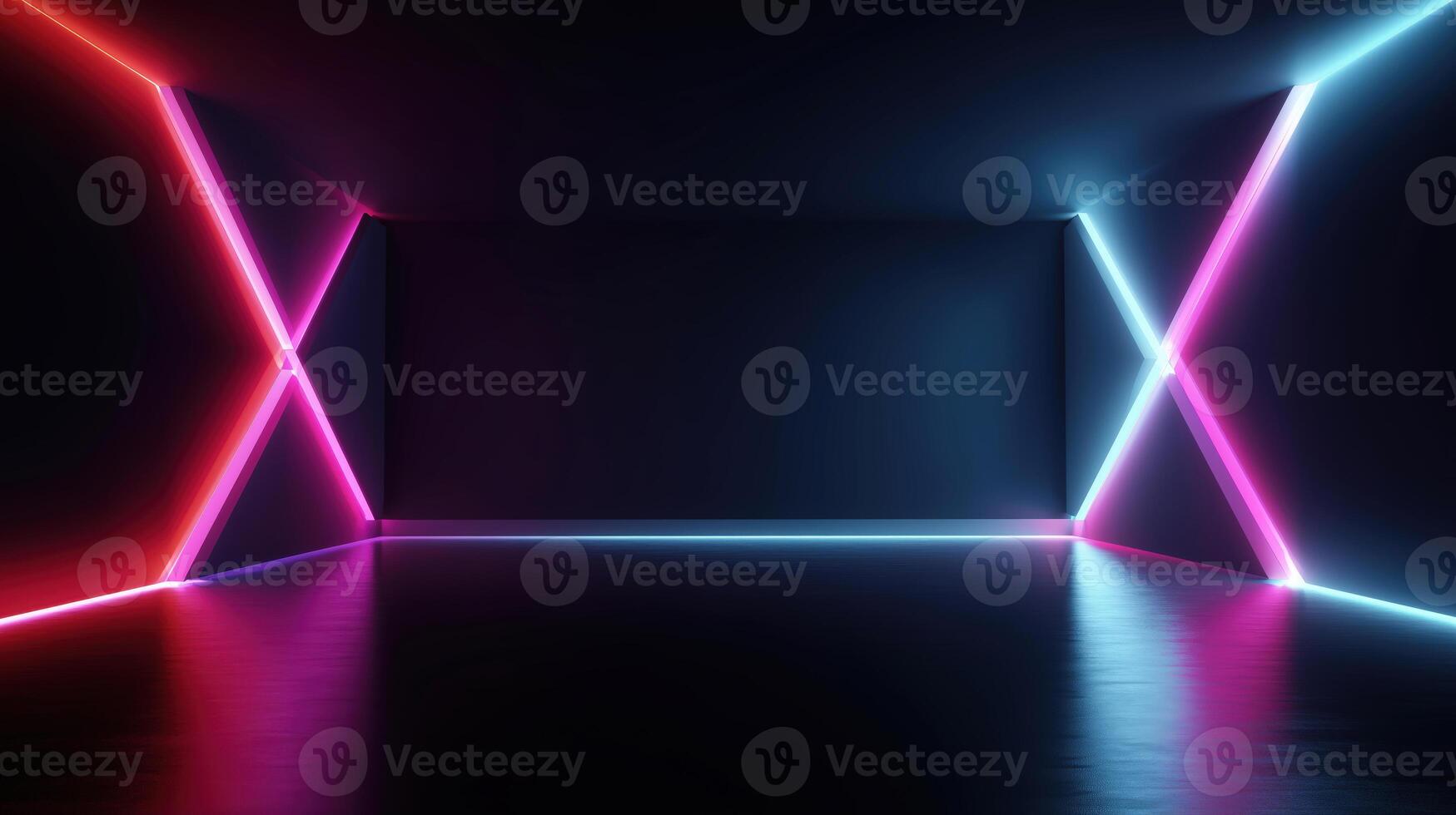 Abstract 3D Background with Neon Light Lines in Dark Space Pro Photo