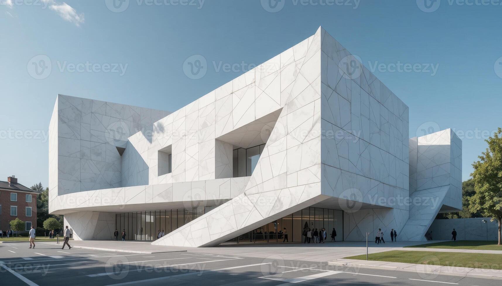 Unique Modern Architecture of a White Marble Building With Angular Design During Daylight Pro Photo