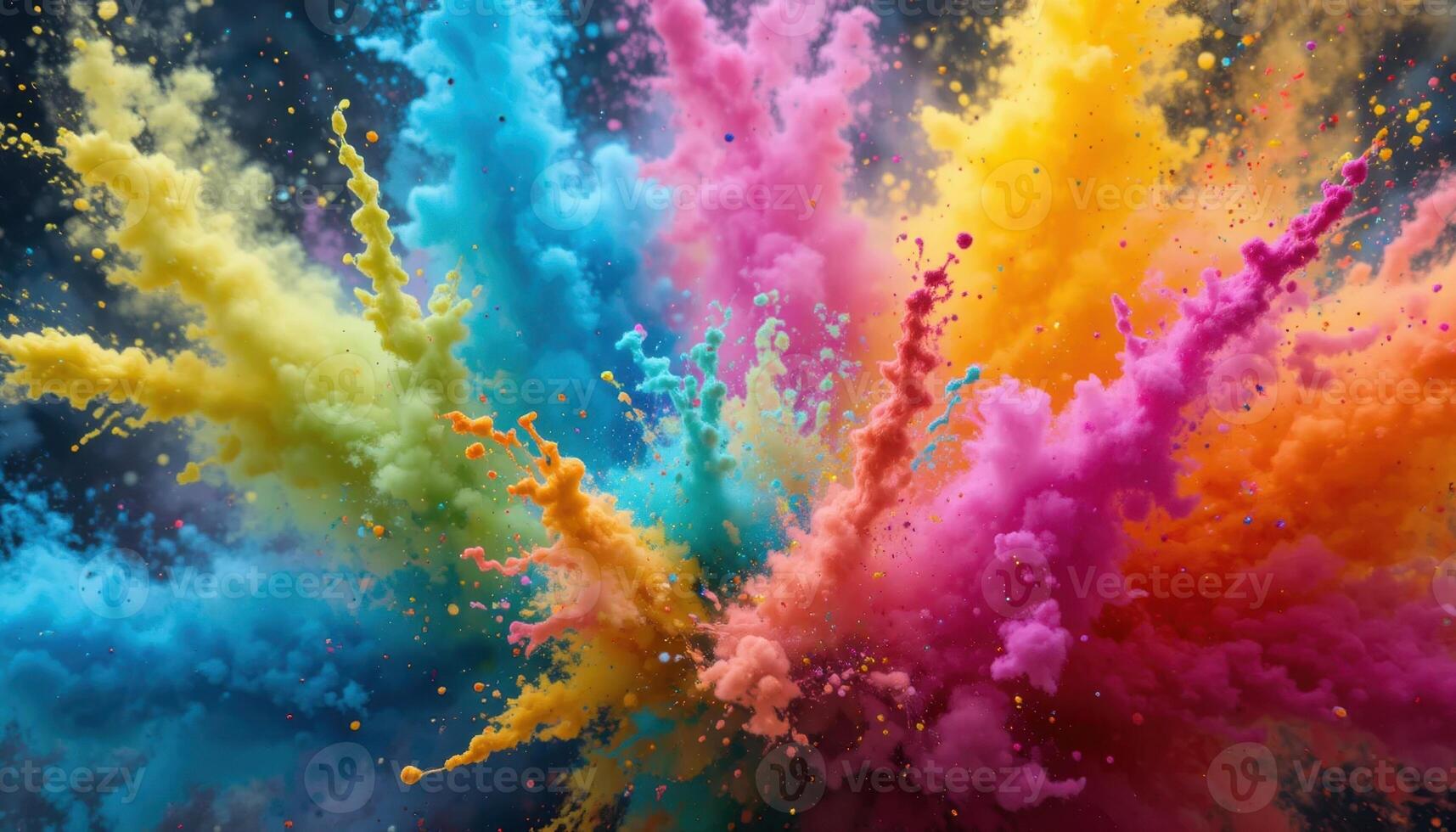 Colorful Explosion of Vibrant Powder Splashes Creates a Stunning Visual Display in a Dynamic Scene Pro Photo