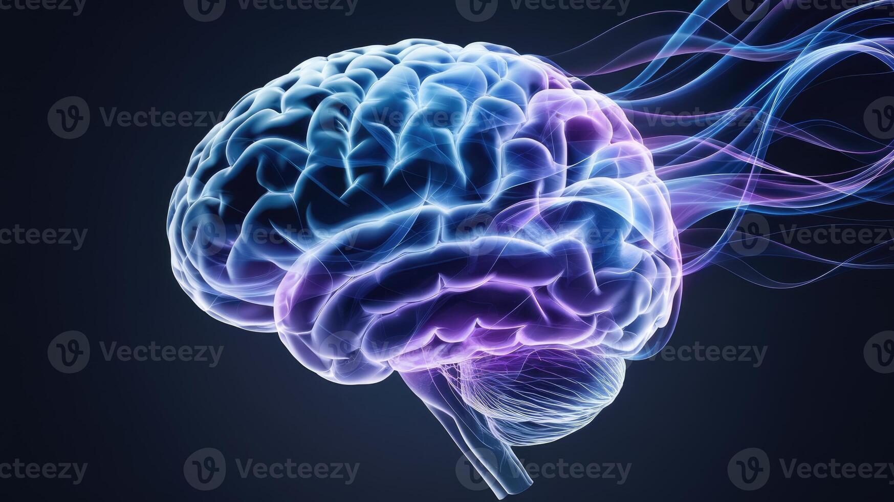 Human Brain Illuminated With Colorful Light Showing Neural Activity and Function Pro Photo