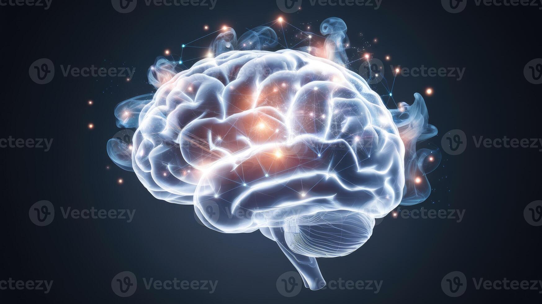Human Brain Illuminated With Neural Network Connection Simulation Pro Photo