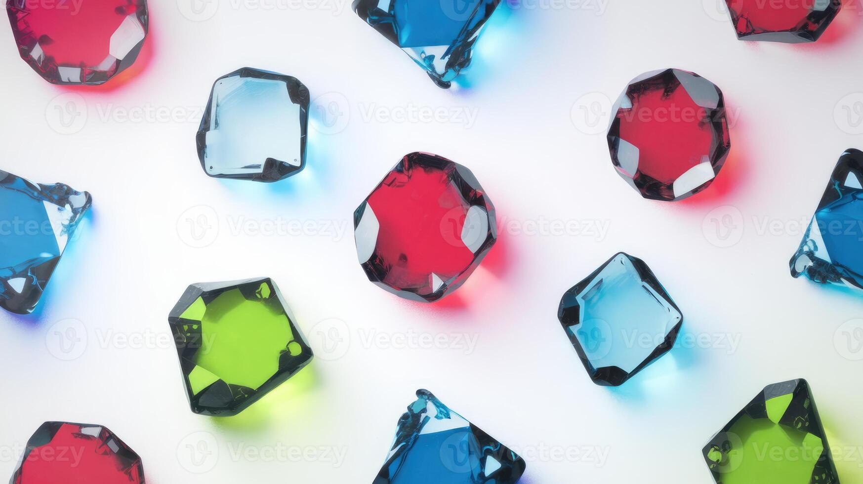 Colorful Gem Stones Are Scattered on a Bright, White Surface in Random Patterns Pro Photo
