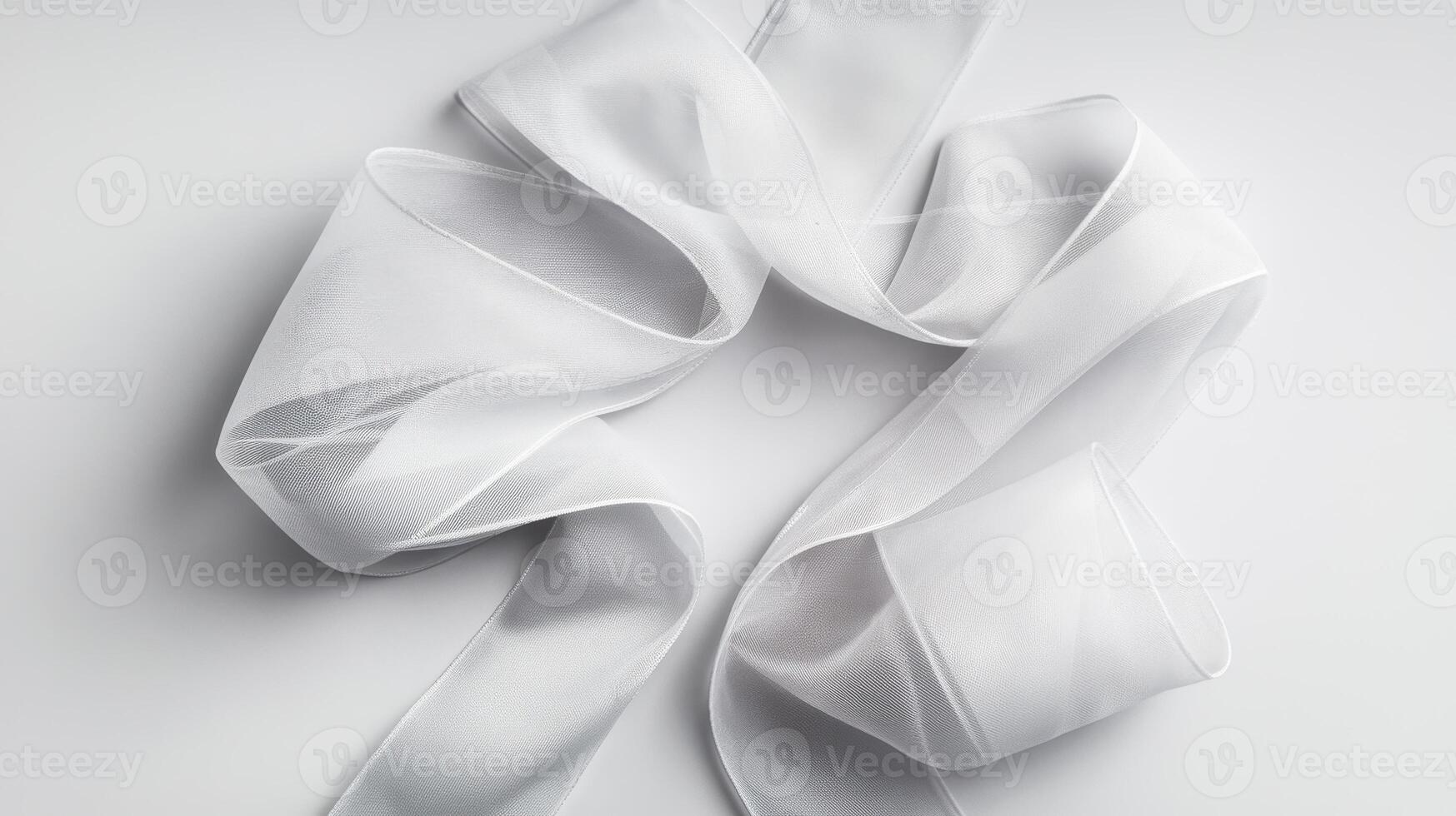 White Sheer Ribbon Flows Across a Light Gray Surface Creating Soft Folds Pro Photo