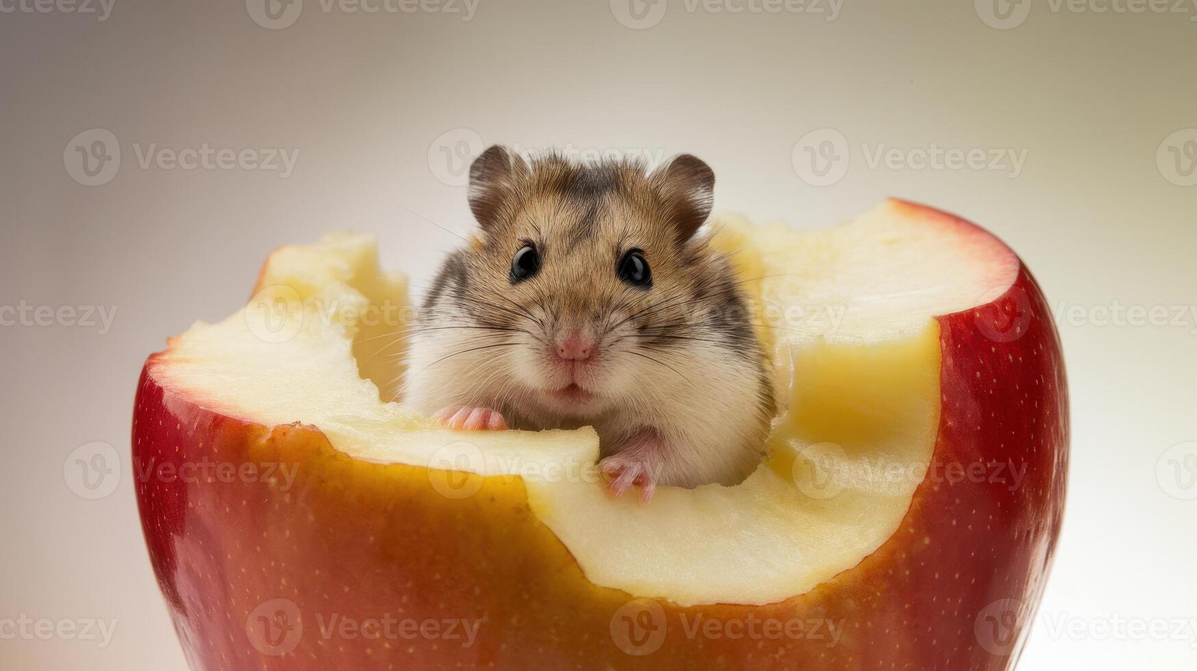 Hamster Nibbles Into a Red Apple, Making a Small Nest at Daytime Pro Photo