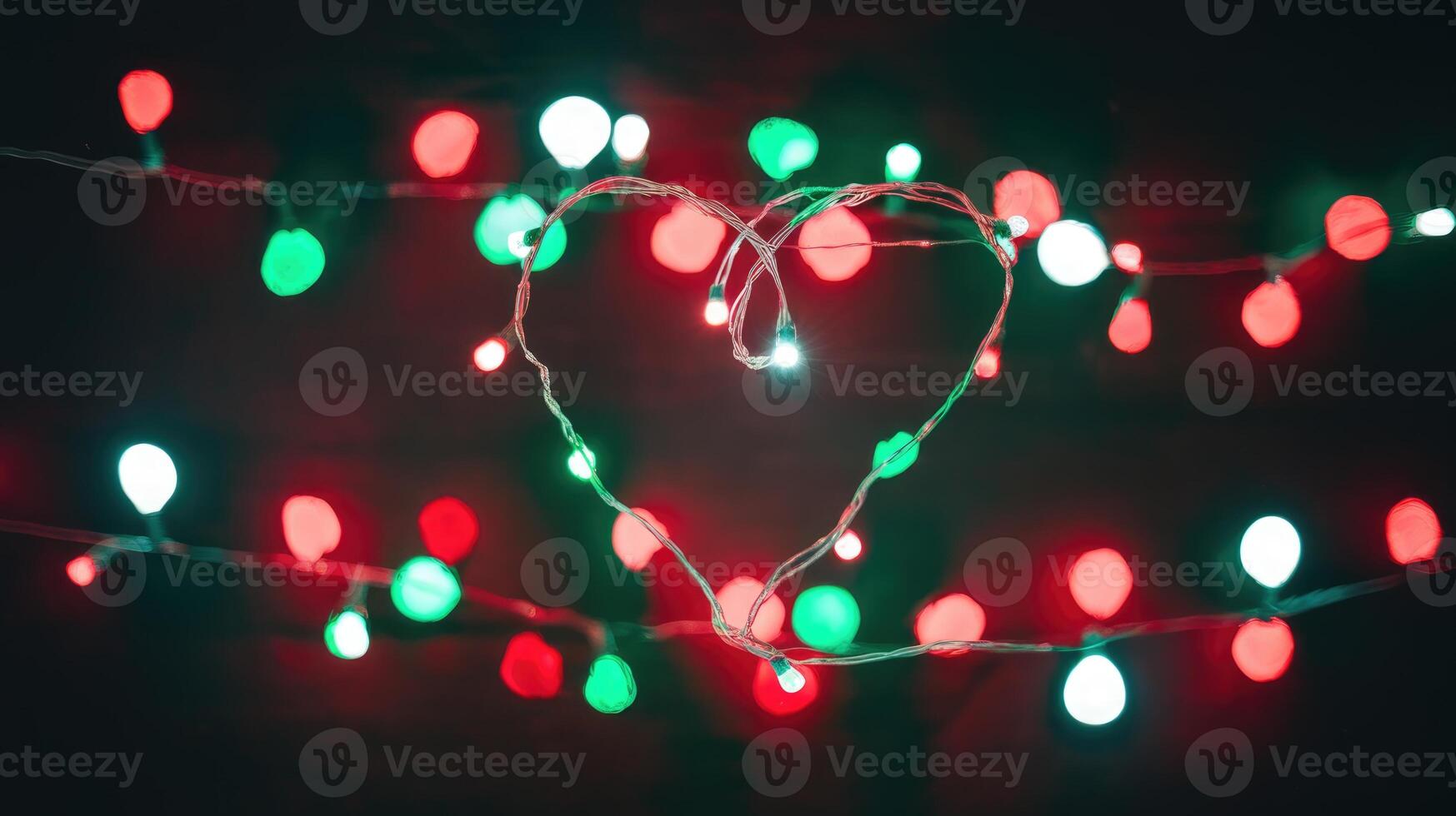 String Lights Create a Heart Shape on a Dark Background at Night Pro Photo