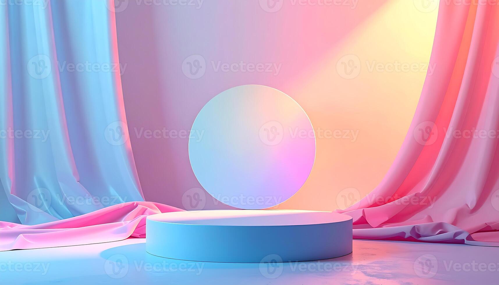 Creative Product Display Podium with Soft Draping Fabric and Frosted Circle Backdrop Pro Photo