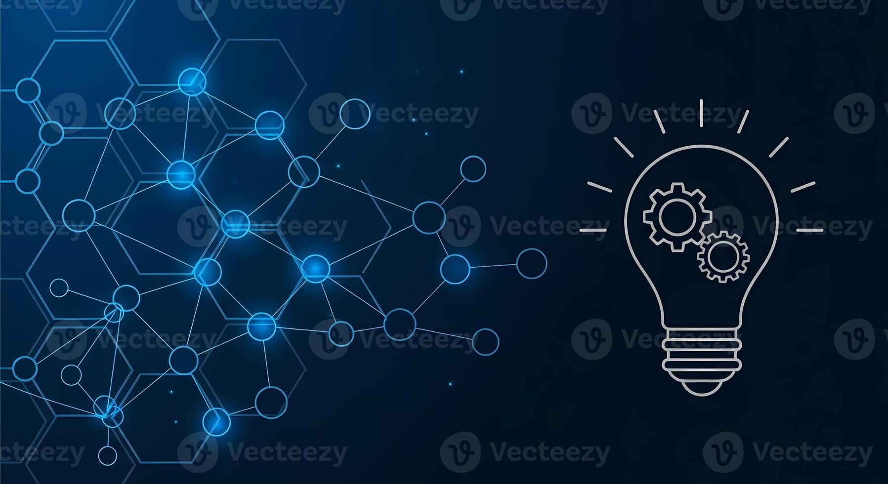 Abstract Network Connection with Glowing Nodes and Light Bulb Idea Icon Technology Concept Background Pro Photo