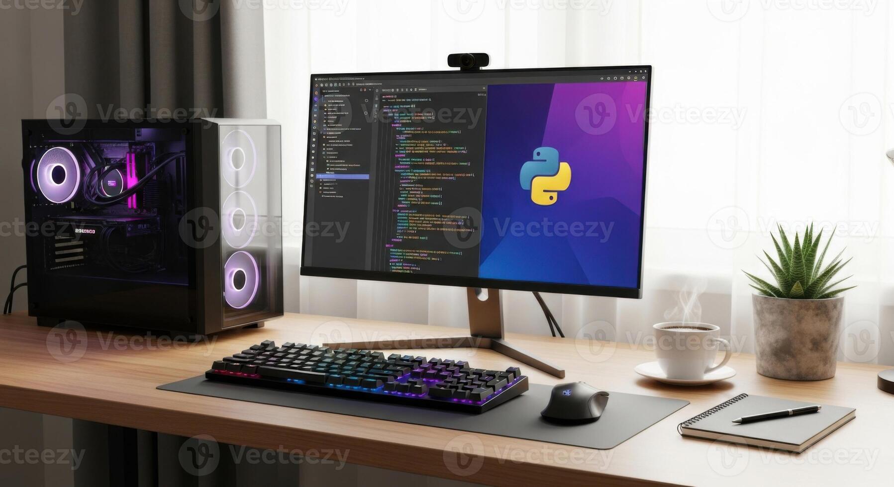 A computer monitor, keyboard and mouse on a desk Pro Photo