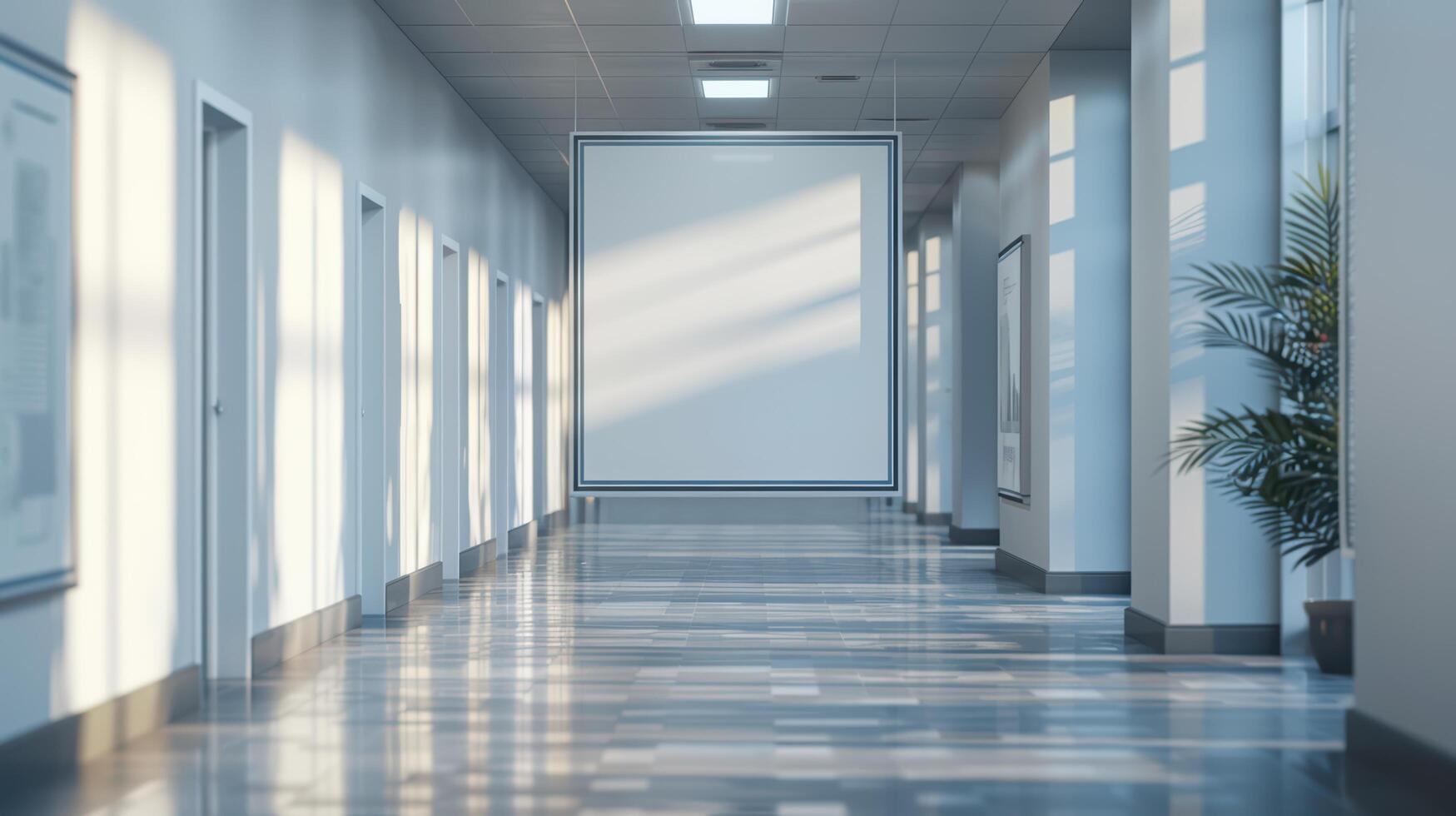Bright and Modern Hallway with Empty Canvas and Greenery Free Photo