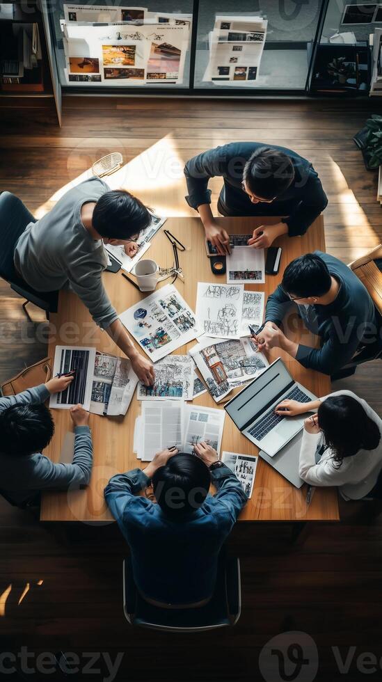 Collaborative brainstorming session at a modern workspace with diverse team members Pro Photo