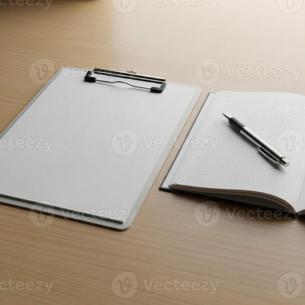 Clipboard and Notebook on Desk A Study in Simplicity and Focus. Pro Photo
