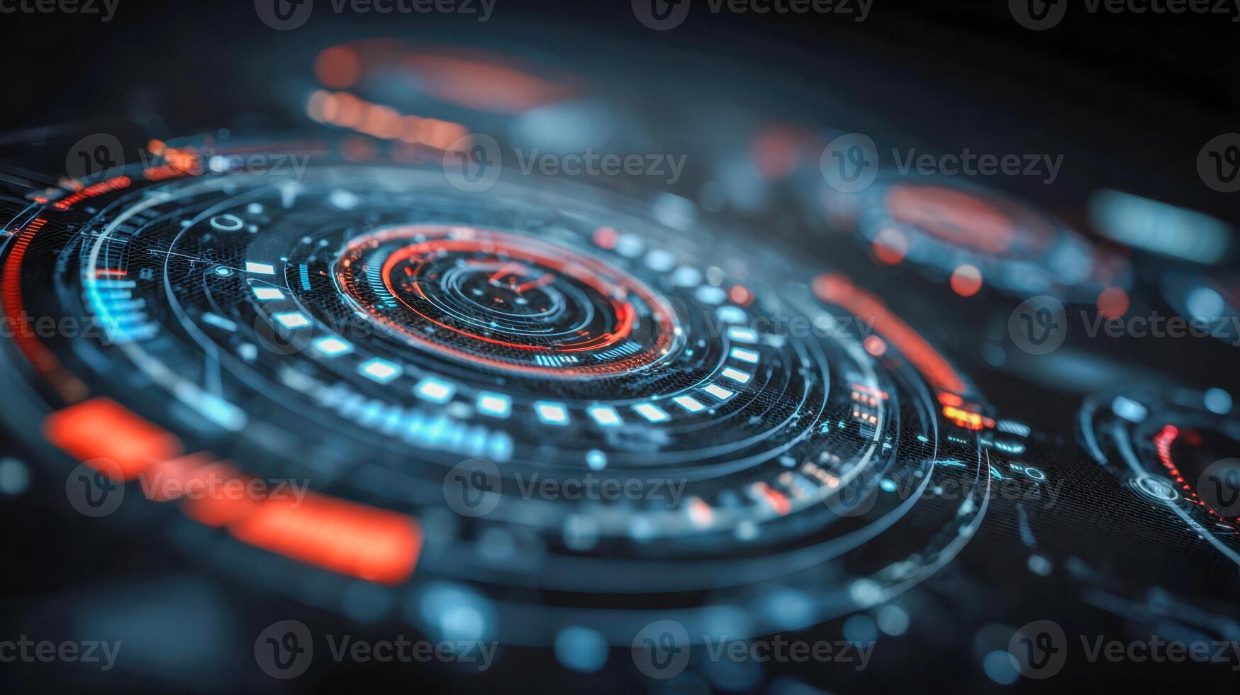 Futuristic digital interface with glowing concentric circles and dynamic visual effects illustrating advanced technology and immersive user experience Pro Photo