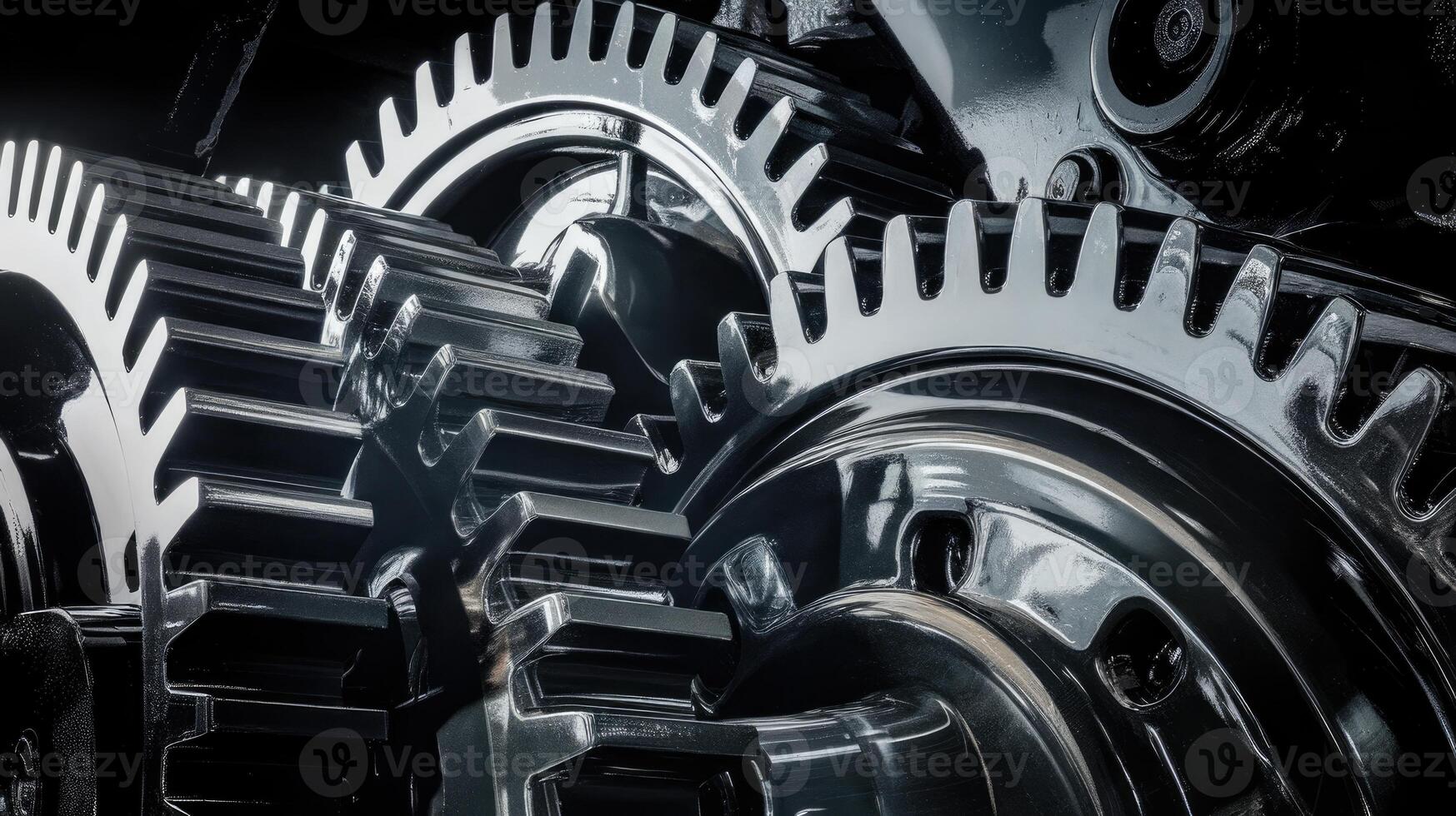 Close up of Shiny Silver Gears in an Engine Mechanical Assembly Pro Photo