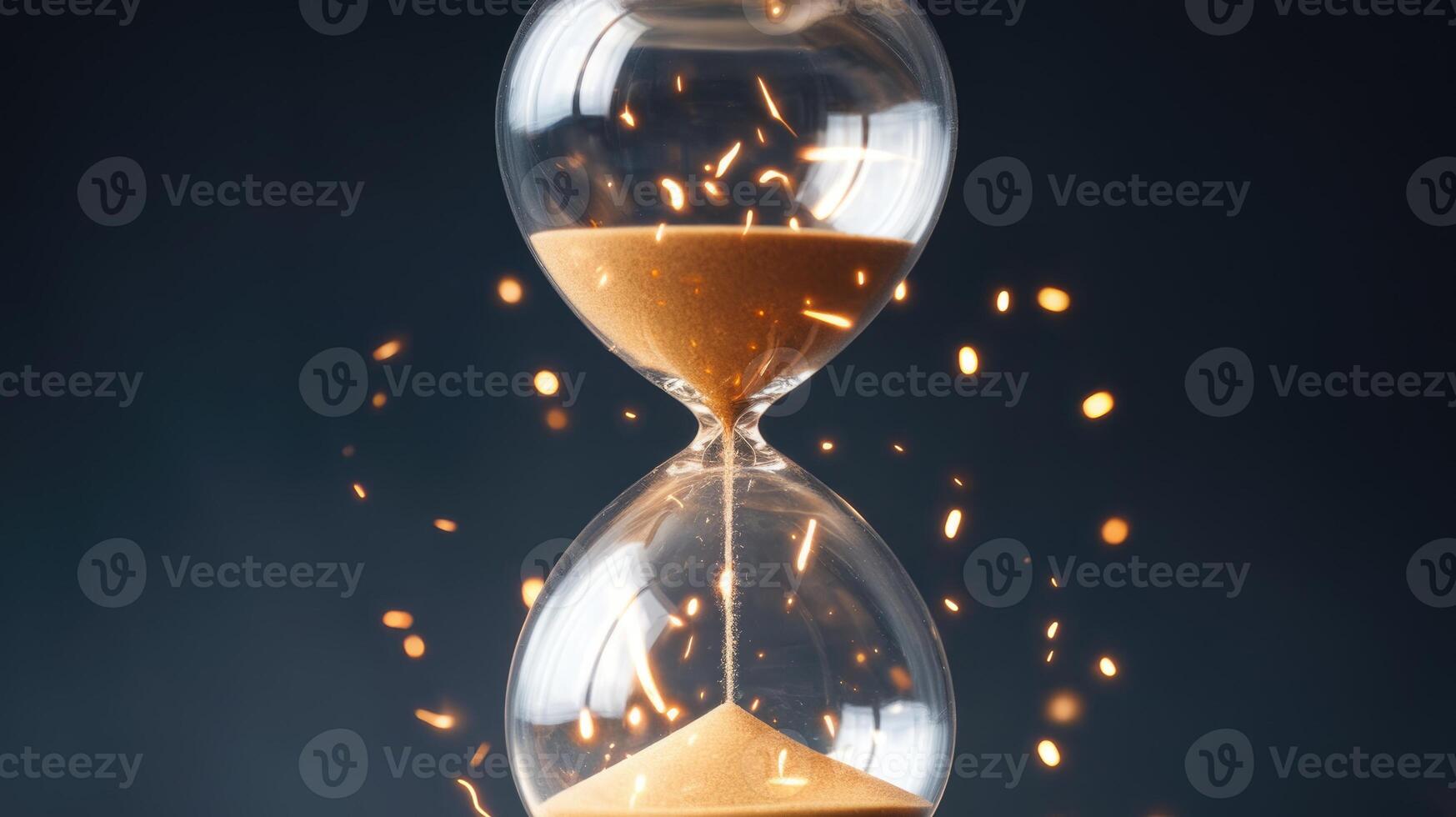 Hourglass With Flowing Sand and Sparkling Particles Showing the Passage of Time Pro Photo