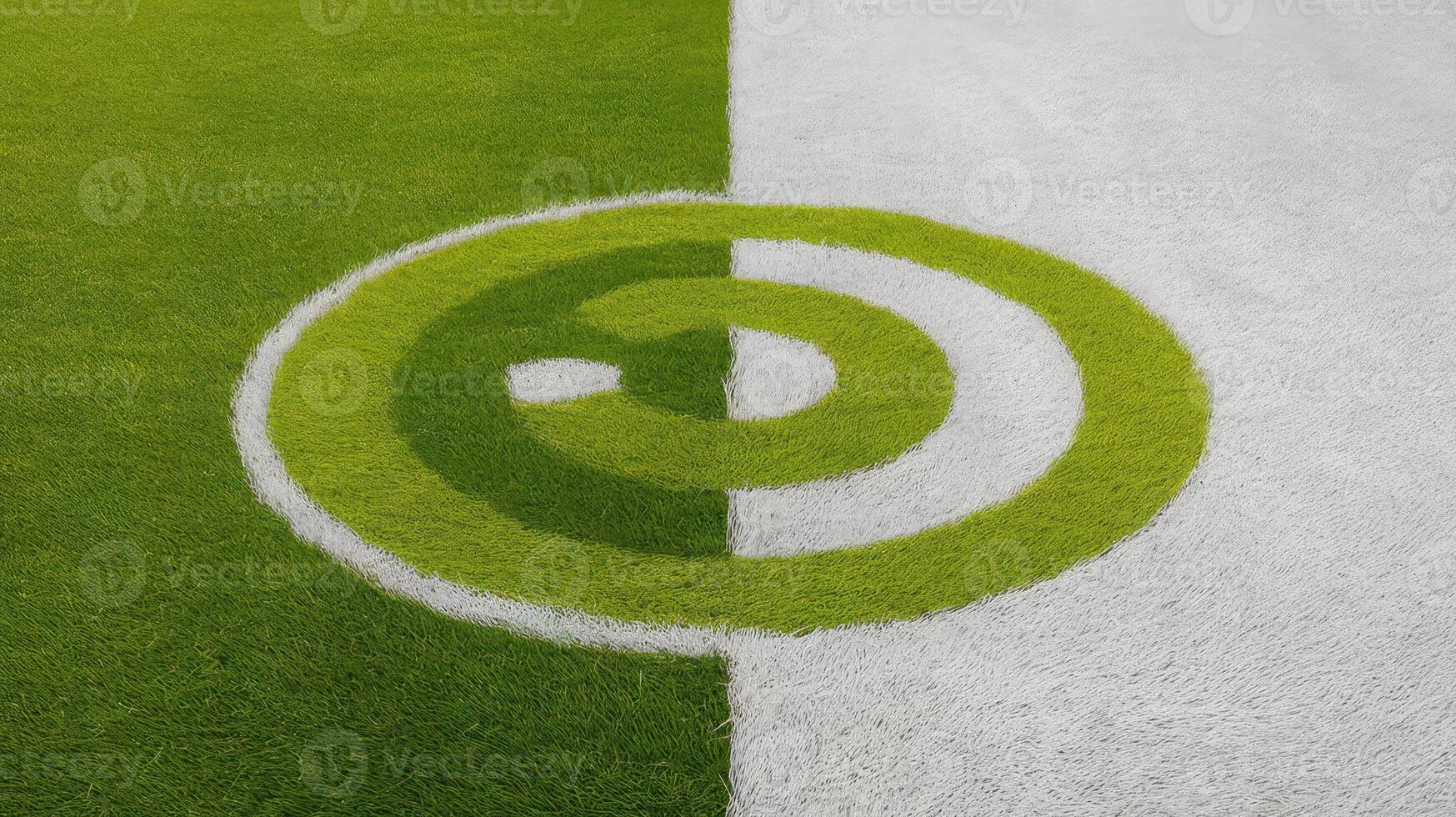 Dual Textured Artificial Turf With Green and White Colors Creating Circular Design Pro Photo
