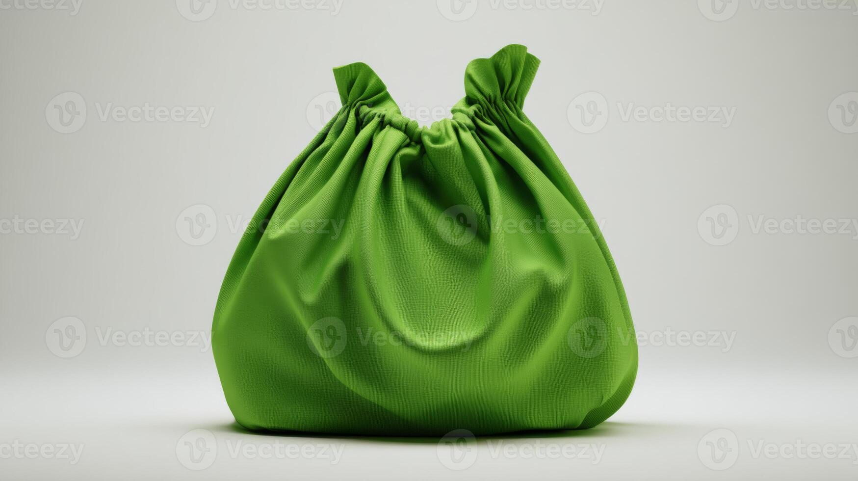 A vibrant green fabric bag with a rounded shape, displaying a soft and casual design against a light background. Pro Photo