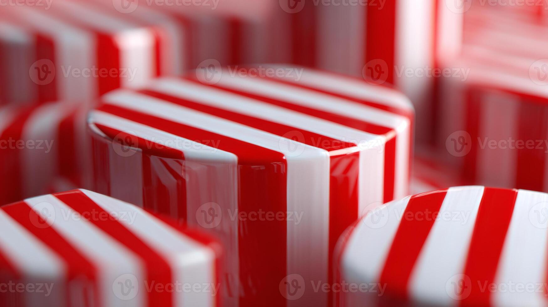 Close-up of glossy red and white striped cylindrical objects that create a vibrant, playful atmosphere. Pro Photo