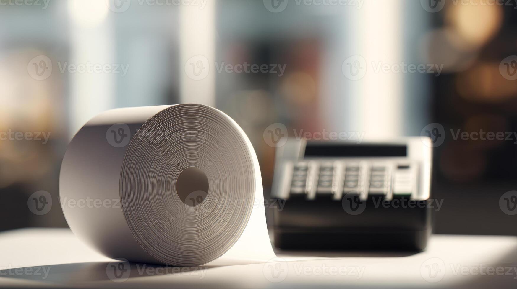 Close-up of a roll of receipt paper with a black payment terminal in the background, creating a modern retail vibe. Pro Photo